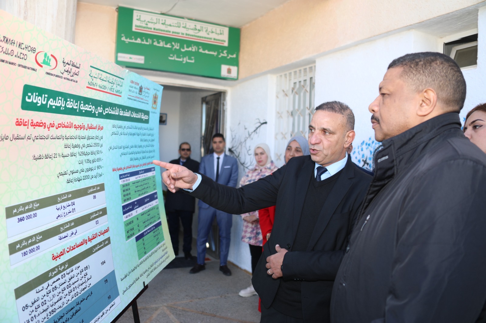 في إطار تخليد اليوم الوطني للأشخاص في وضعية إعاقة، قام السيد عبد الكريم الغنامي، عامل إقليم تاونات رئيس اللجنة الإقليمية للتنمية البشرية، يوم الخميس 04 دجنبر الجاري، بزيارة ميدانية لمركز بسمة الأمل للإعاقة الذهنية بجماعة تاونات، أحد المشاريع النموذجية المنجزة ضمن برامج المبادرة الوطنية للتنمية البشرية، والذي يُعنى بتقديم الرعاية والتأهيل لهذه الفئة المجتمعية.