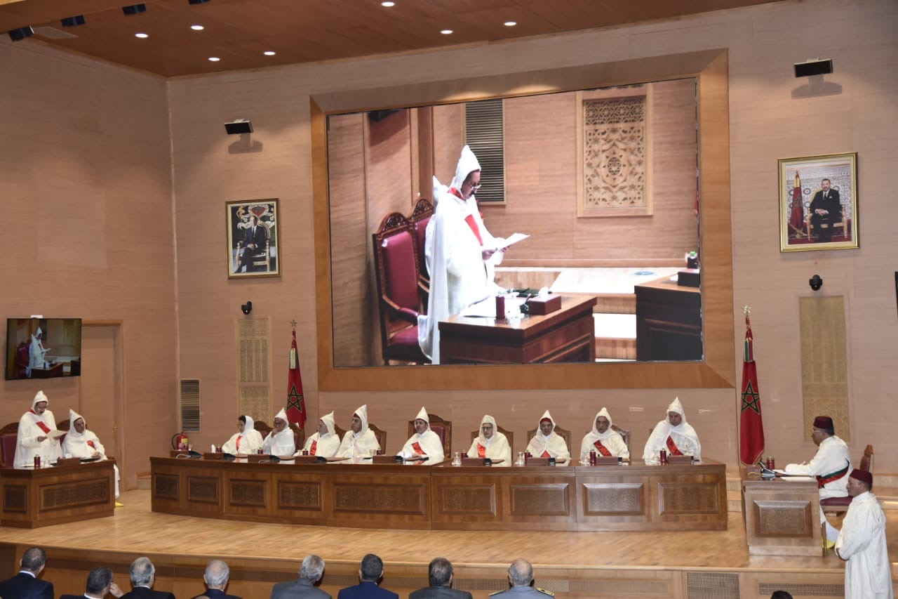 إنه لشرف كبير واعتزاز عظيم أن يلتئم هذا الجمع المبارك في هذه الجلسة الرسمية لافتتاح السنة القضائية 2024، والتي يأتي انعقادها تنفيذاً للأمر المولوي السامي لأمير المؤمنين جلالة الملك محمد السادس رئيس المجلس الأعلى للسلطة القضائية دام له النصر والتمكين، وهي التفاتة ملكية سامية حافلة بالدلالات ما فتئ جلالته يسبغها على السلطة القضائية فترفع بها هامتها عاليا وتستنير بهديها مُوقِنَةً أنها مكرمة وتزيدها فخرا واعتزازا وبذلاً للمزيد من العطاء.